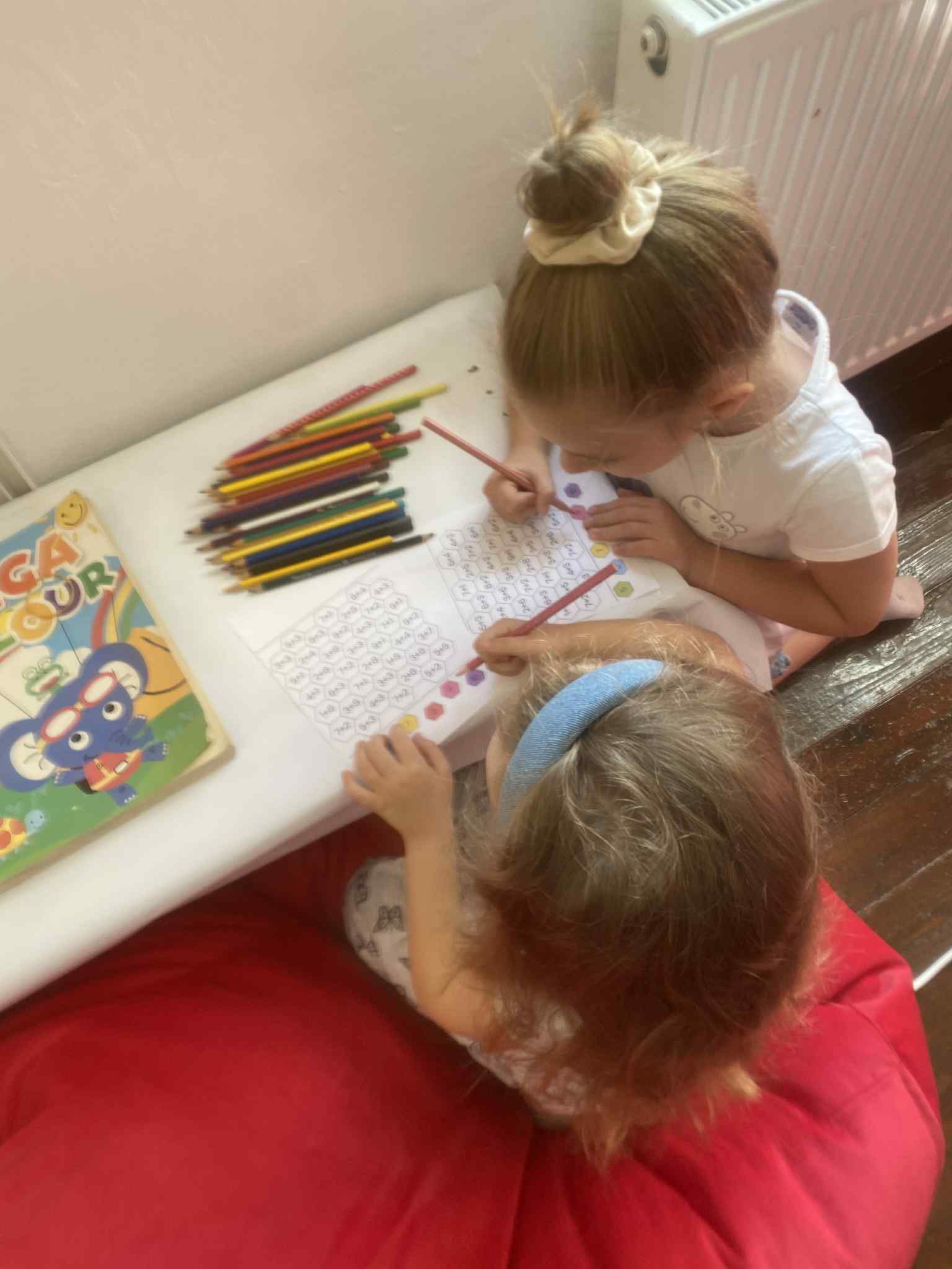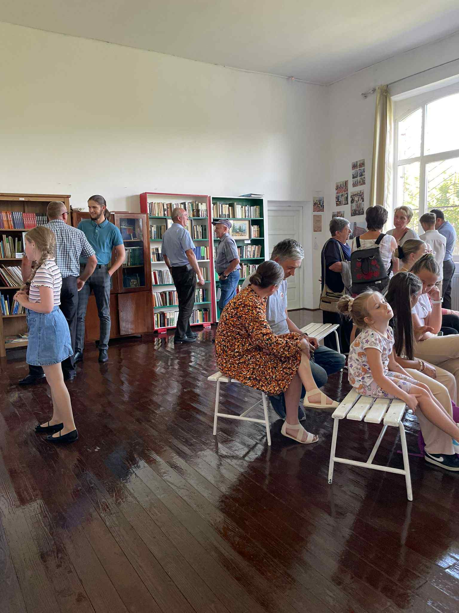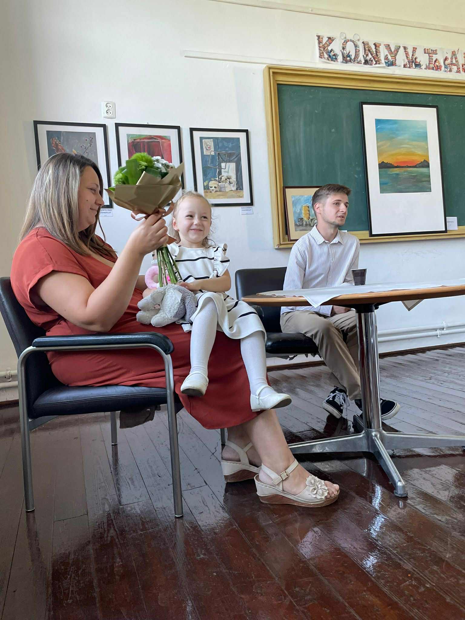 Aztán jött a vakáció, hetente találkoztunk, keddenként. Ekkor volt nyitva a könyvtár. Unatkoztak első alkalommal, így készítettem kincskereső játékot, könyvvadászatot, meséltem nekik érdekes könyvekről, rendezkedtünk, elvoltunk. Augusztusban újabb tevékenységre került sor. Sólyom Bandó egyéni kiállítását tekinthették meg kicsik és nagyok egyaránt.