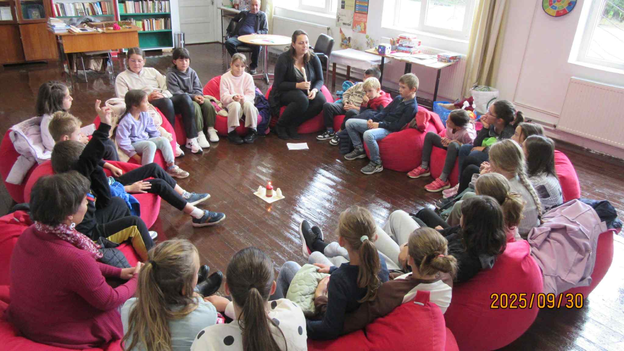 Most október van. Találjátok ki mit csinálok. Szervezem a következő eseményt. Azt találtam ki, hogy minden hónapban lesz valami bemutató, mese, tevékenység, valami. Új külsőt is kapott a könyvtár, vannak babzsákjaink, pihe-puha szivacsszőnyegünk. Már nem megyünk be sáros cipővel. Már tiszteljük a könyvtárat, szeretjük. Órákat is tartunk ott, a mesemondókat is ott hallgatjuk meg, egyszerűen csak, mert jó ott lenni.